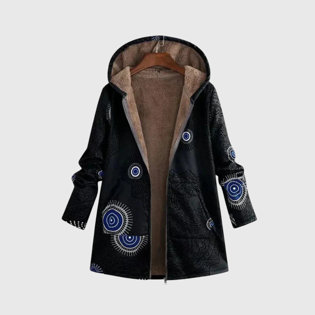 • Striking Mandala and Sunburst Pattern: This parka showcases bold, artistic motifs that create a unique and captivating look.