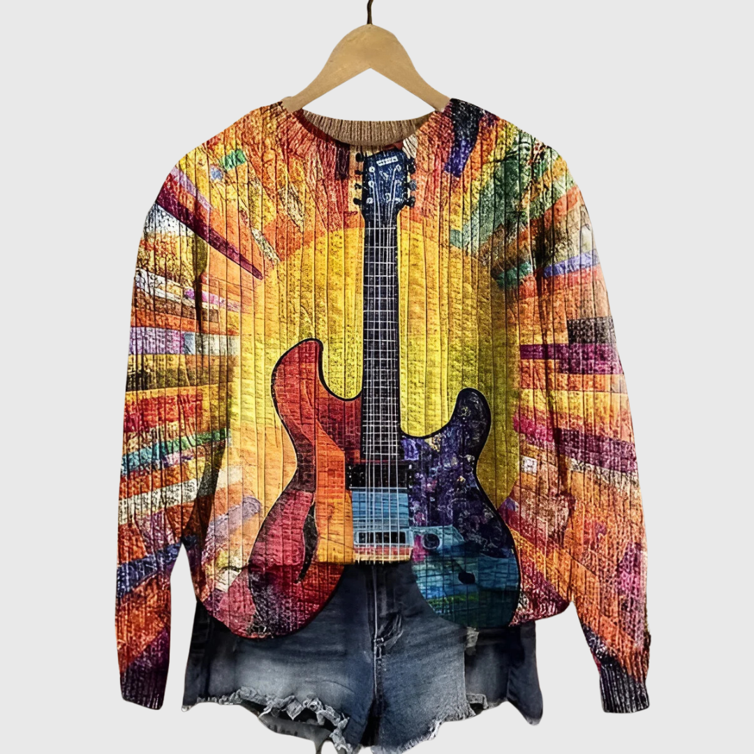 Add a touch of Boho spirit to your wardrobe with this casual sweatshirt, showcasing a vibrant hippie guitar print that embodies a relaxed and artistic vibe.